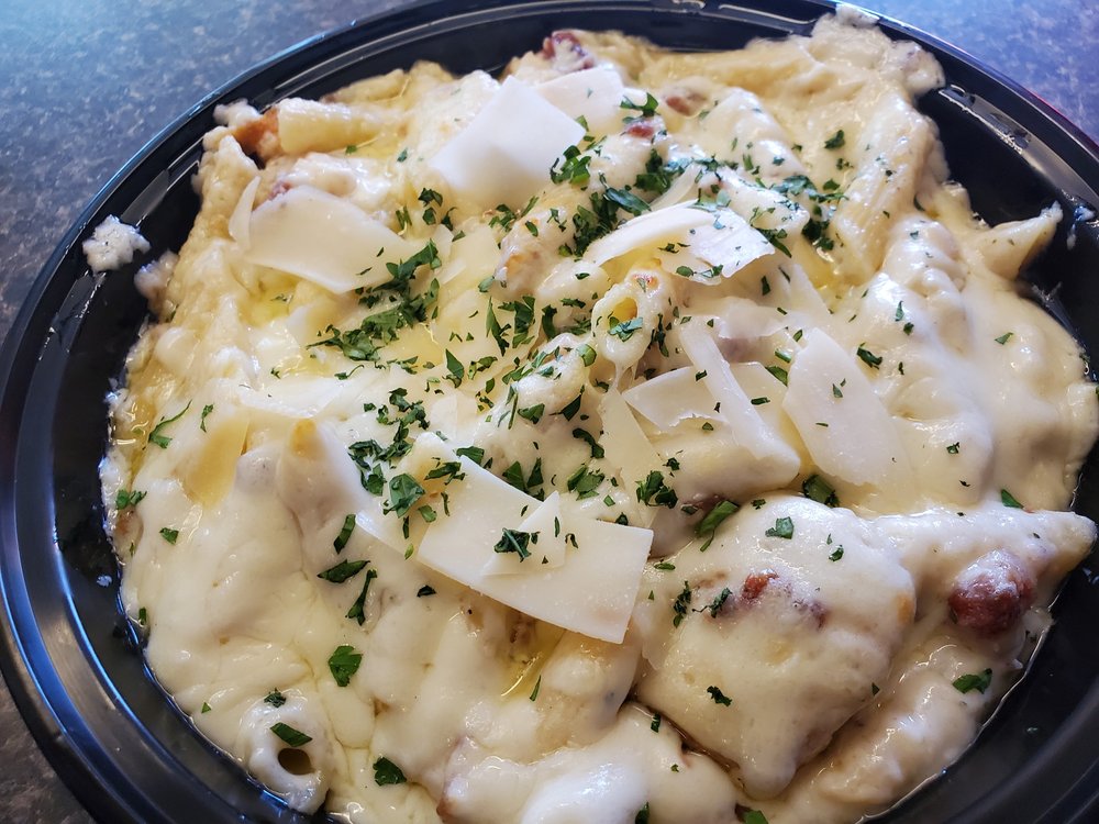 House-made Alfredo with broccoli. Florets with penne pasta and chicken for an additional charge.